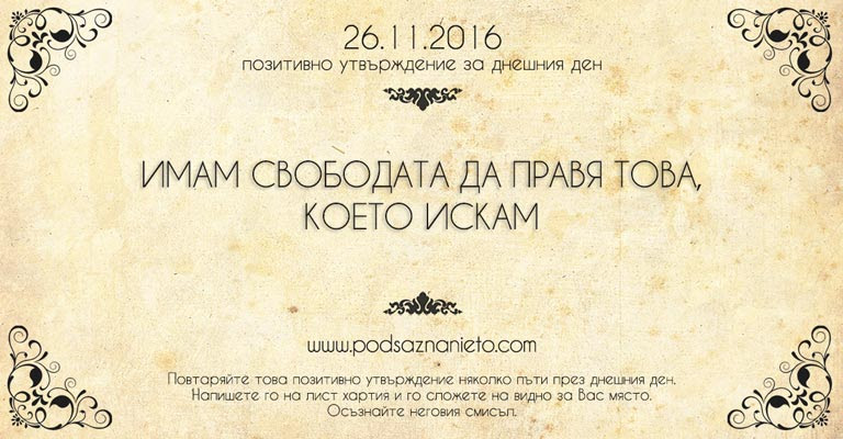 Позитивно намерение за 26 ноември 2016