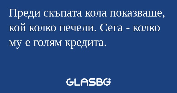 Преди скъпата кола показваше, кой колко печели. Сега - колко му е голям кредита.