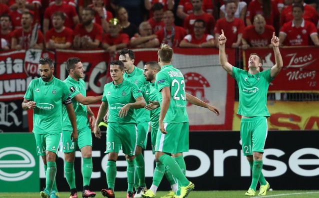 Сент Етиен стигна до инфарктно домакинско реми срещу Андерлехт – 1:1 в мач от група C. Съперниците от двете съседни страни Франция и Белгия предложиха оспорван мач, но без кой знае колко голови положения. През първата част „зелените“ французи бяха спасени от гредата в една ситуация, но през втората допуснаха попадение, макар и от дузпа в 62-ата минута. Точен за Андерлехт беше Тилеманс и с това той донесе минималната преднина за белгийците от 0:1. Тя се запази до четвъртата добавена минута в мача, когато Ру успя да изравни за Сент Етиен – 1:1. В ранния мач в група C немският Майнц надви в интересна гоненица своя азербайджански домакин Габала с 3:2. Йошинори Муто, Джон Кордоба и Левин Отсунали вкараха за Майнц, а временен обрат от 0:1 до 2:1 направиха азерите с головете на Гурбанов и Зеньов, но после не издържаха. Класиране в група C: 1. Андерлехт 4-2 4 т. 2. Майнц 3-1 4 т. 3. Сент Етиен 2-2 2 т. 4. Габала 3-6 0 т. Коментирай