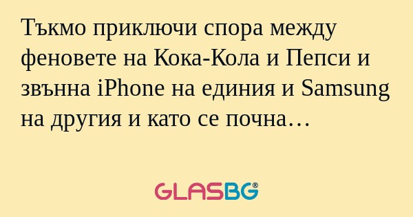 Тъкмо приключи спора между феновете на Кока-Кола и Пепси и звънна iPhone на единия и Samsung на другия и като се почна…
