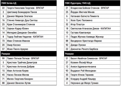 Вижте съставите на Ботев и Лудогорец