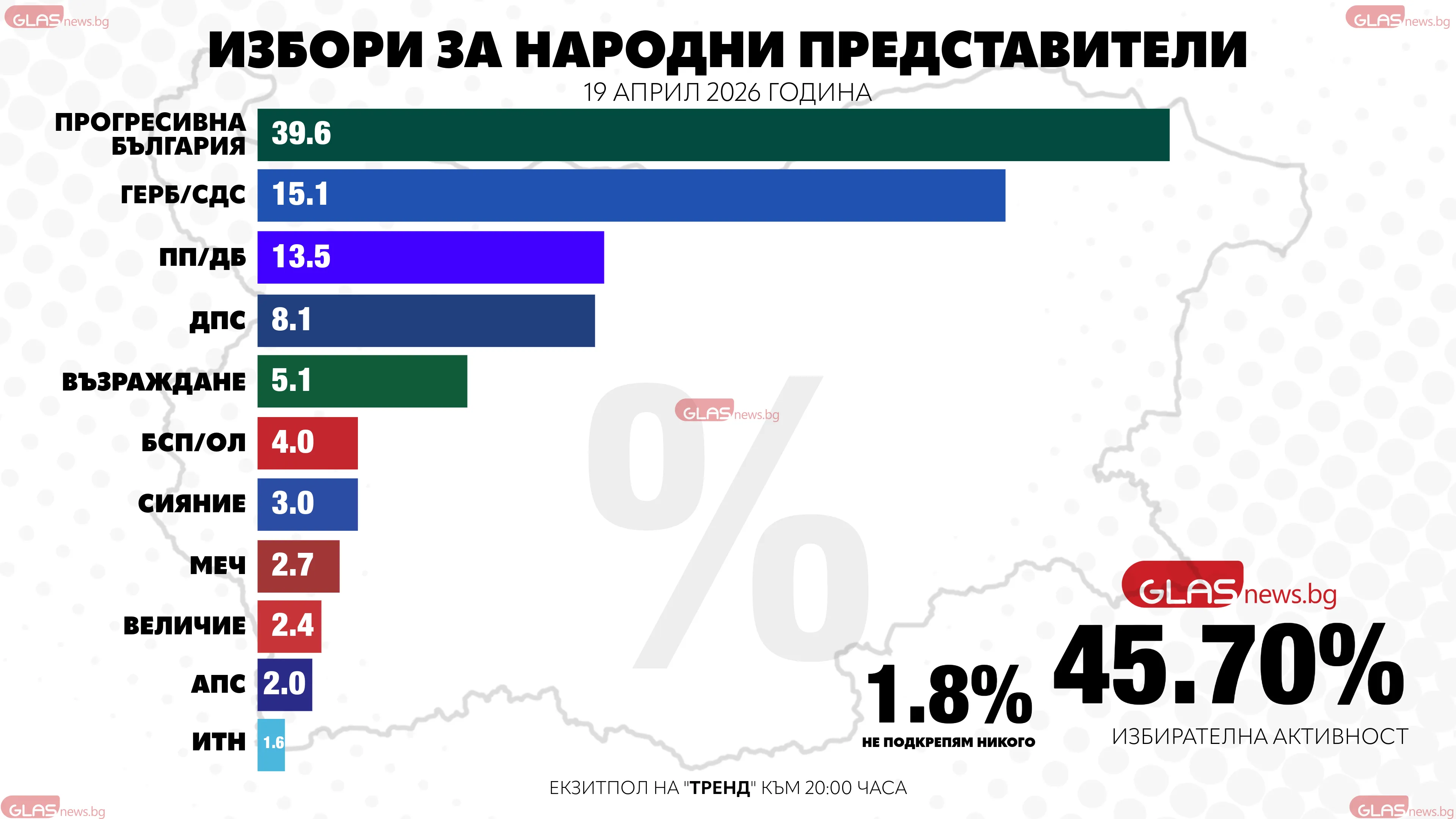 Това показват екзитполовете на социологическа агенция "Тренд" към 20:00 часа.