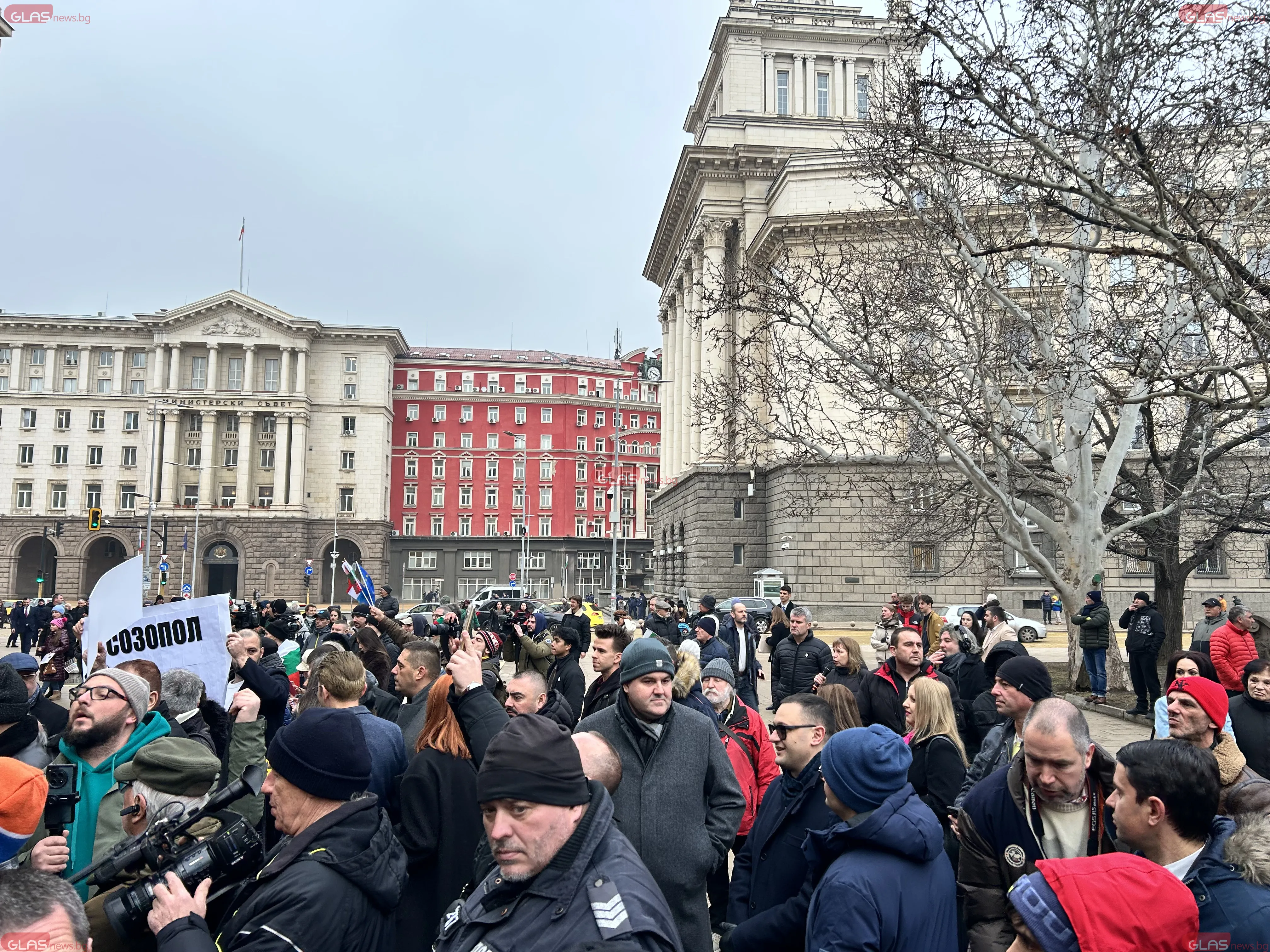 Присъстващите на "Дондуков" 2 скандираха името на 5-ия президент. Виждаха се и плакати с надписи "Радев премиер" и "Хасково е с вас".