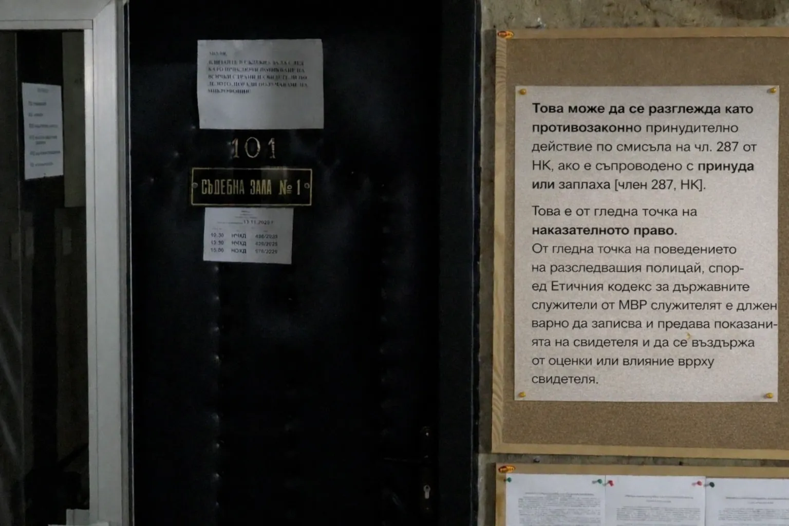 Това може да се разглежда като противозаконно принудително действие по смисъла на чл. 287 от НК, ако е съпроводено с принуда или заплаха [член 287, НК]. Това е от гледна точка на наказателното право. От гледна точка на поведението на разследващия полицай, според Етичния кодекс за държавните служители от МВР служителят е длъжен вярно да записва и предава показанията на свидетеля и да се въздържа от оценки или влияние върху свидетеля]. Провеждането на предварителен разговор с работодателя, който не е страна по делото, нарушава тези етични изисквания.