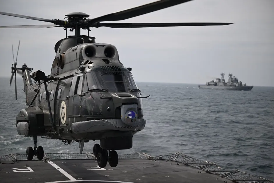 Като част от учението "Морски щит“ румънската армия симулира и сценарий, при който екипажите на фрегати се нуждаят от спешна подкрепа. Помощта идва от въздуха.
