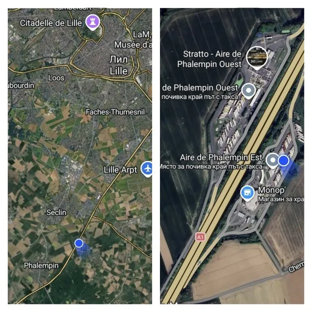 По думите му, паркинг на магистрала А1, на около 10 километра преди Лил, се е оказал сцена на масирана кражба.