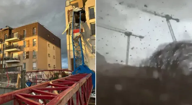 ????️ Images impressionnantes de la tornade qui a frappé Ermont dans le Val-d'Oise ce lundi vers 17h45. Trois grues sont tombées ! (© hakim.9212) pic.twitter.com/7rpZuOpzSv