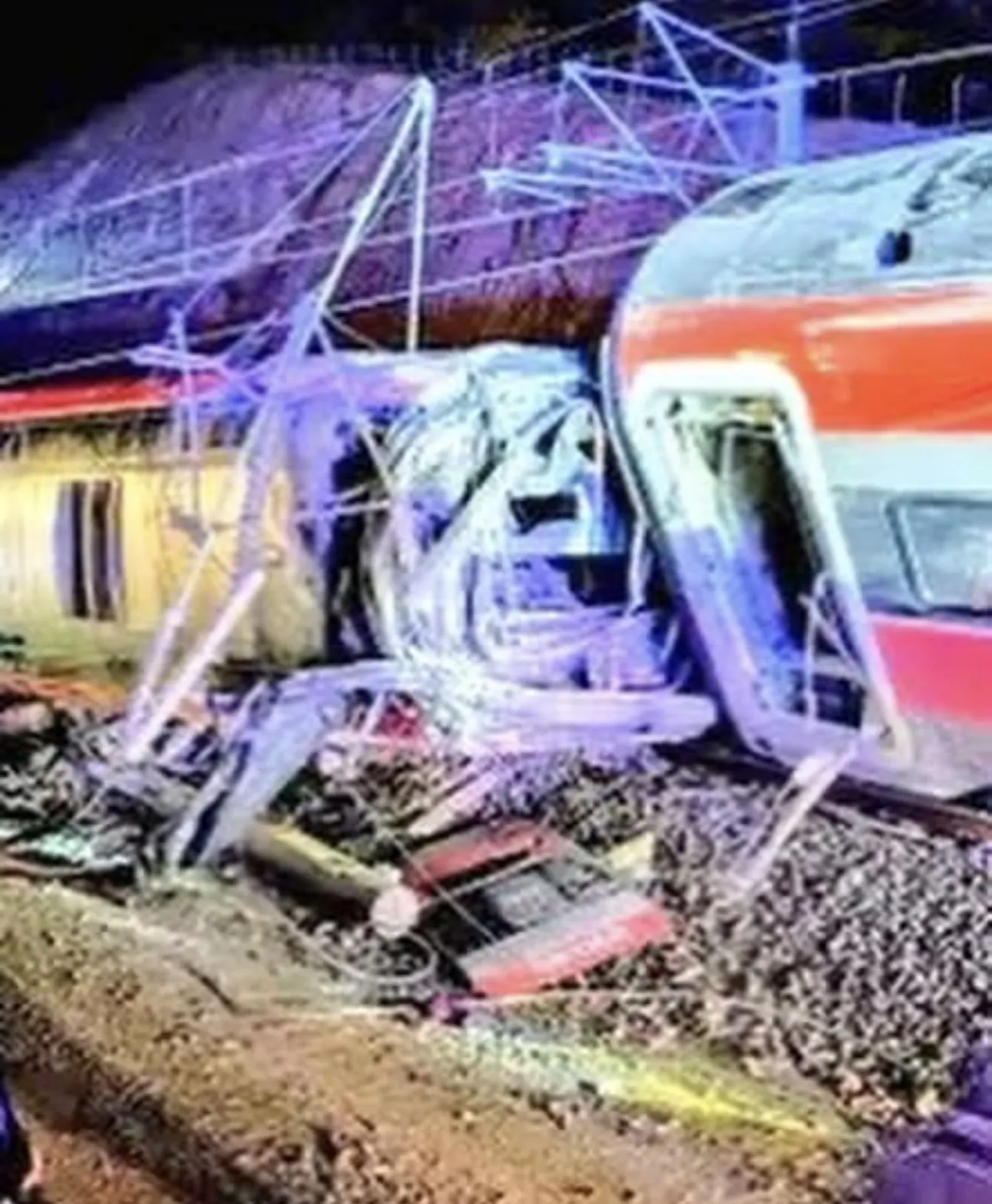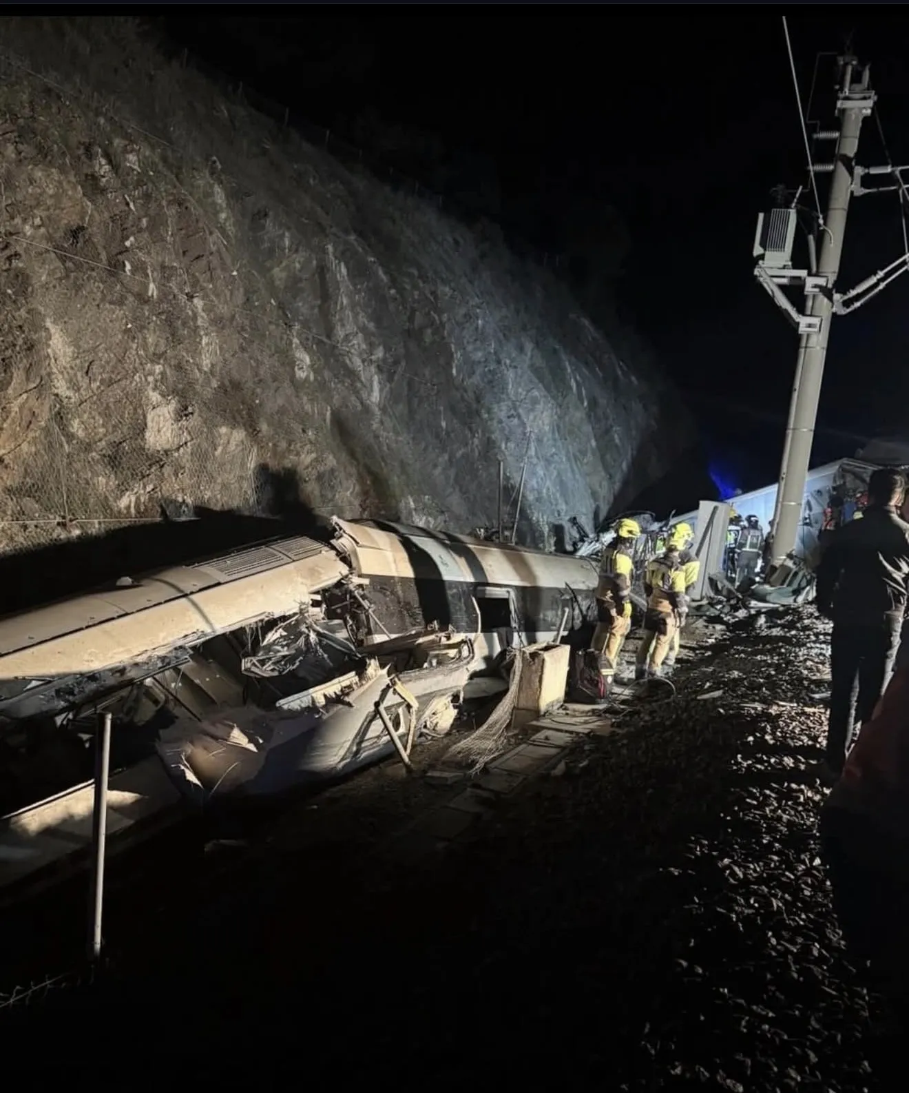 Журналистът от испанското обществено радио Салвадор Хименес, който е пътувал във високоскоростния влак, разказва пред TVE, че един от вагоните се е преобърнал по таван. Кметът на Адамус Рафаел Морено, сред първите пристигнали на мястото, описва пред „Ел Паис“ потресаващи сцени. По думите му сблъсъкът вероятно не е бил челен, а страничен, тъй като не са забелязани напълно смачкани вагони.