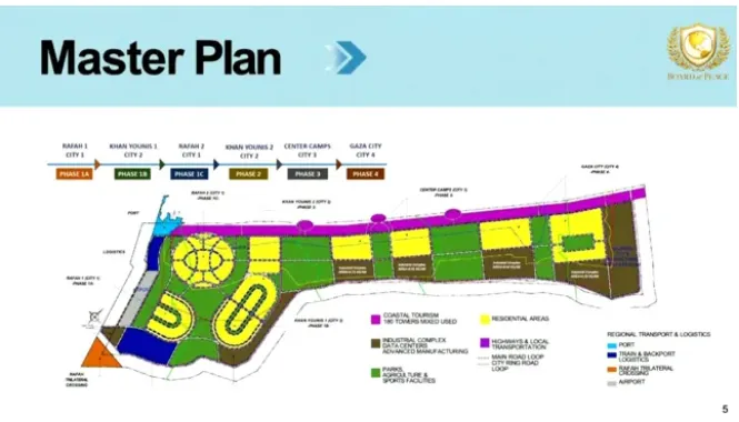 Т.нар. „Мастър план“ показва футуристични небостъргачи по крайбрежието и нови градове с имена „Нова Рафа“ и „Нова Газа“.