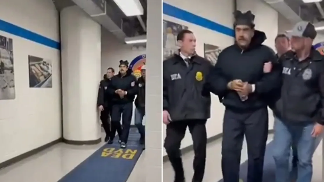 Белият дом разпространи видеозапис в социалната мрежа „Екс“ (X), на който се вижда как Мадуро, окован с белезници и ескортиран от служители на Агенцията за борба с наркотиците (Drug Enforcement Administration – DEA), преминава по коридор в сграда на федералните власти. В официалния акаунт Rapid Response на Белия дом кадрите бяха придружени от коментара „Perp walked“ – израз, използван в САЩ за публично извеждане на заподозрян след арест.