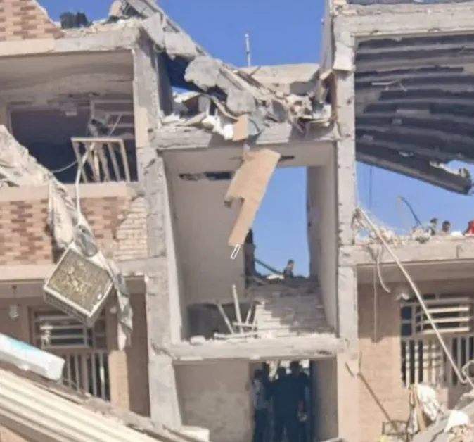 Кадри, излъчени от държавната телевизия, показват силно увредена фасада на сградата, с изхвърчали елементи и открити части от вътрешността, както и разпръснати отломки наоколо.