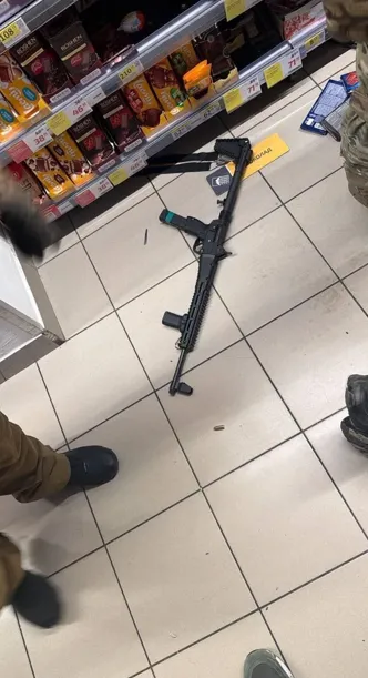 Майорът и командир на 413-ти полк от Войските за безпилотни системи „Рейд“ на въоръжените сили на Украйна Евгений Карас посочва в Telegram, че стрелецът е бил въоръжен с пушка Kel-Tec SUB-2000 калибър 9×21 мм, като подчертава, че това не е автомат „Калашников“ и не е оръжие от военна зона.