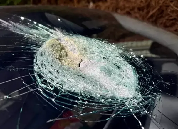 След като спрял, ветеринарят установил, че стъклото е горещо на допир, със стопена част и дълбока вдлъбнатина. Кадрите от камерите на колата не показали нищо – ударът бил толкова бърз, че дори не се заснел.