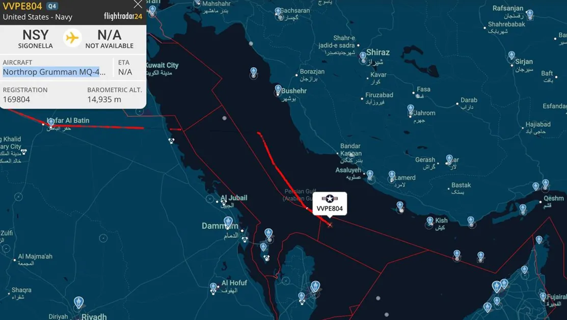 Въпреки споразуменията за деескалация и започналия мирен процес, Съединените щати продължават да засилват техническия контрол над въздушното пространство близо до границите на Иран. Според авиационните служби за мониторинг, американското командване е разположило безпилотен летателен апарат (БЛА) Northrop Grumman MQ-4 Global Hawk от авиобаза в Италия към иранското крайбрежие. Дронът вече извършва активни патрули в международни води, съсредоточавайки се предимно върху два стратегически обекта на Ислямската република.
