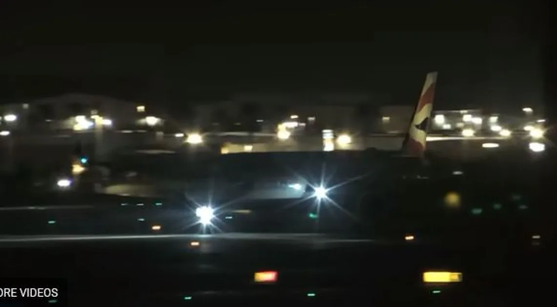 Задното колело на "Еърбъс A350-1000", летящ за Лондон, се е откъснало от самолета след като е напуснал пистата на международното летище "Хари Рийд". Драматични видеокадри, споделени от уебсайта за проследяване на полети Flightradar, показват искри, излизащи от дясната основна стойка за колесника по време на излитане, а малко след това във въздуха гумата пада.
