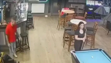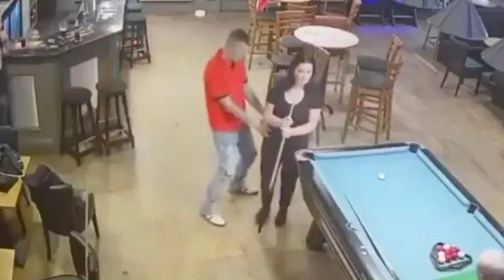 Записът, заснет от охранителна камера и датиращ отпреди поне година, показва семейна двойка, която се готви да играе билярд в почти празно заведение. Докато съпругът подрежда топките, към жената от другия край на масата се приближава мъж в червена тениска и скъсани дънки, който изглежда в нетрезво състояние. Според кадрите той опипва задните ѝ части, след което тя го отблъсква.