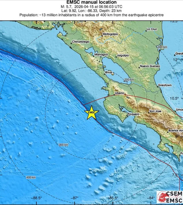 Земетресение с магнитуд 5,7 по Рихтер беше регистрирано край бреговете на Коста Рика в ранните часове на сряда.