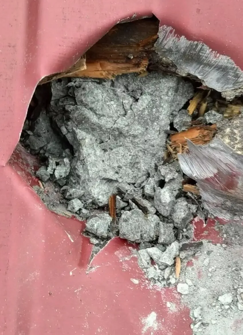 Следа от удар на метеорит на покрива Снимка: Скрийншот
