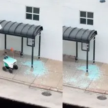 Робот куриер полудя: разби спирка и продължи, влачейки стъкла ВИДЕО