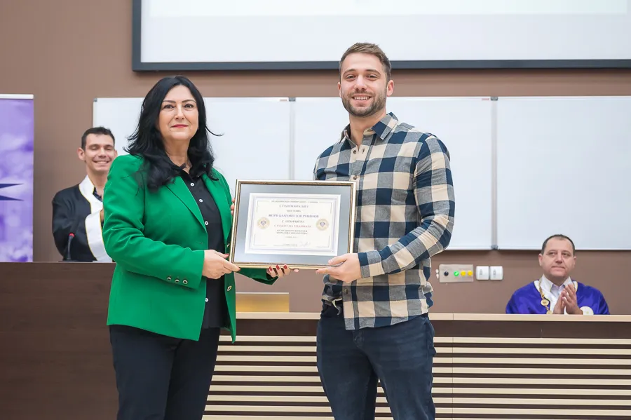 Наградата му беше връчена лично от Ректора проф. Ланджов.