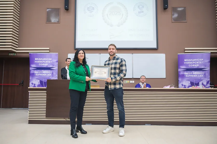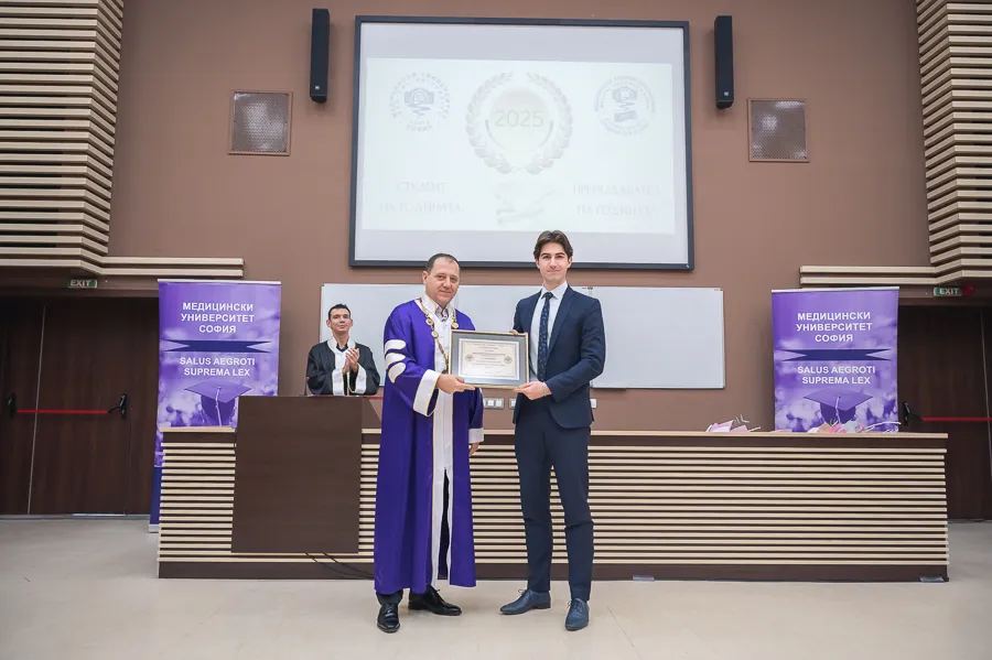 Голямата награда „Студент на годината на Медицински университет-София“ за 2025 година получи ЦВЕТОМИР КИРИЛОВ, 6 курс, специалност „Медицина“.
