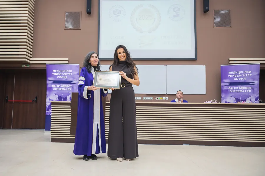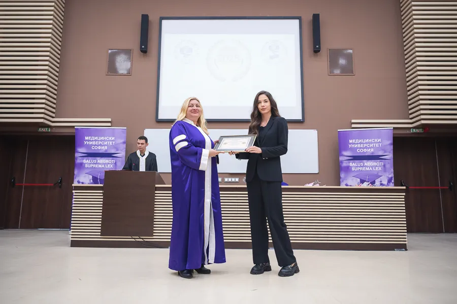 Наградата връчи проф. Александрина Воденичарова, Декан на ФОЗ „Проф. д-р Цекомир Воденичаров, дмн“.