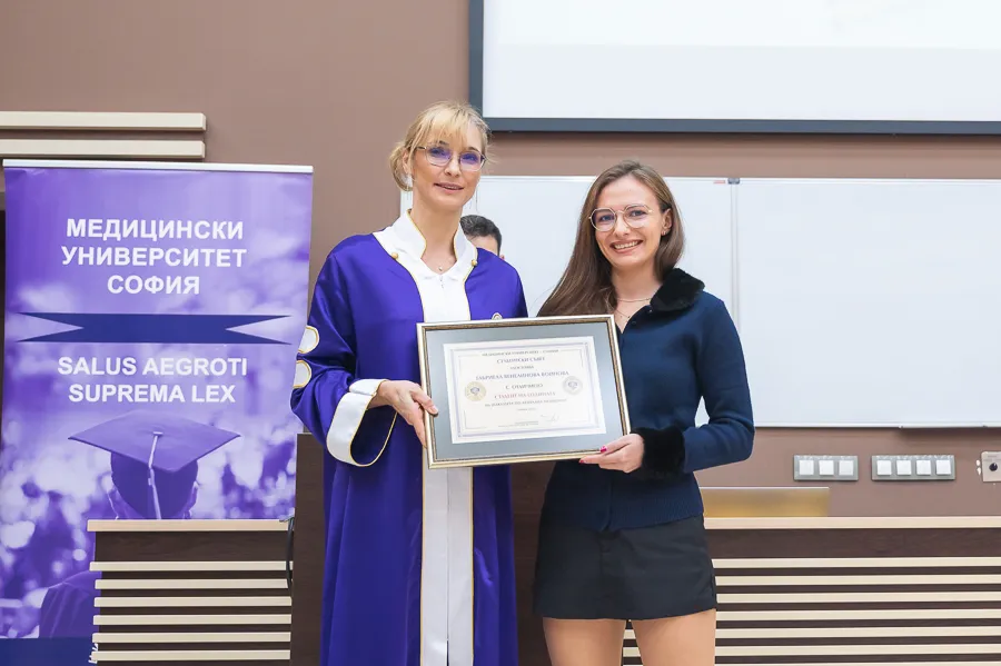 Наградата връчи проф. Красимира Маркова, помощник-ректор на МУ-София.