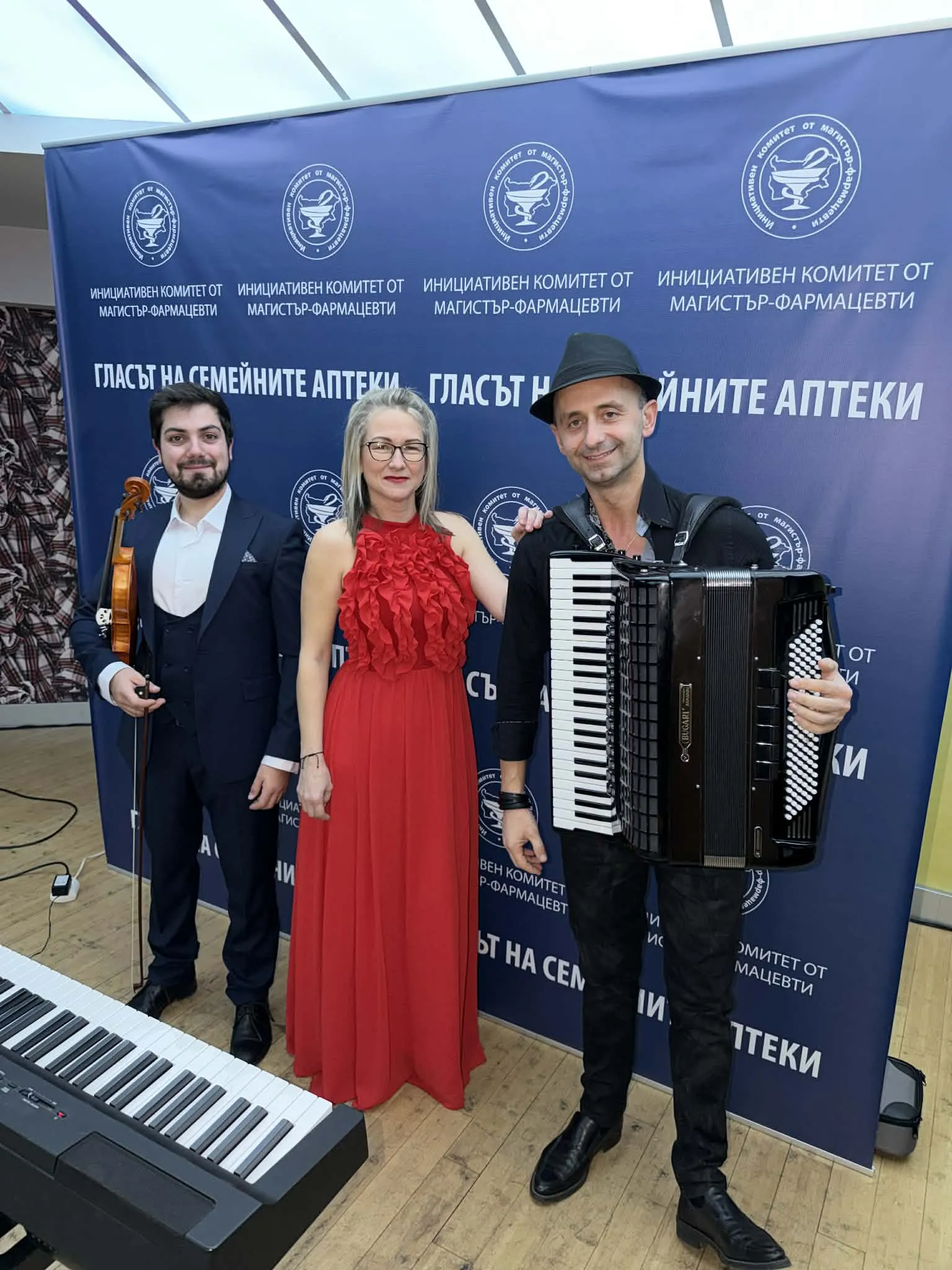 За празничното настроение на вечерта се погрижи талантливо трио от професионални музиканти с класически изпълнения: пиано – Ралица Ботева, акордеон – Калоян Куманов, цигулка – Стилиян Дерменджиев.