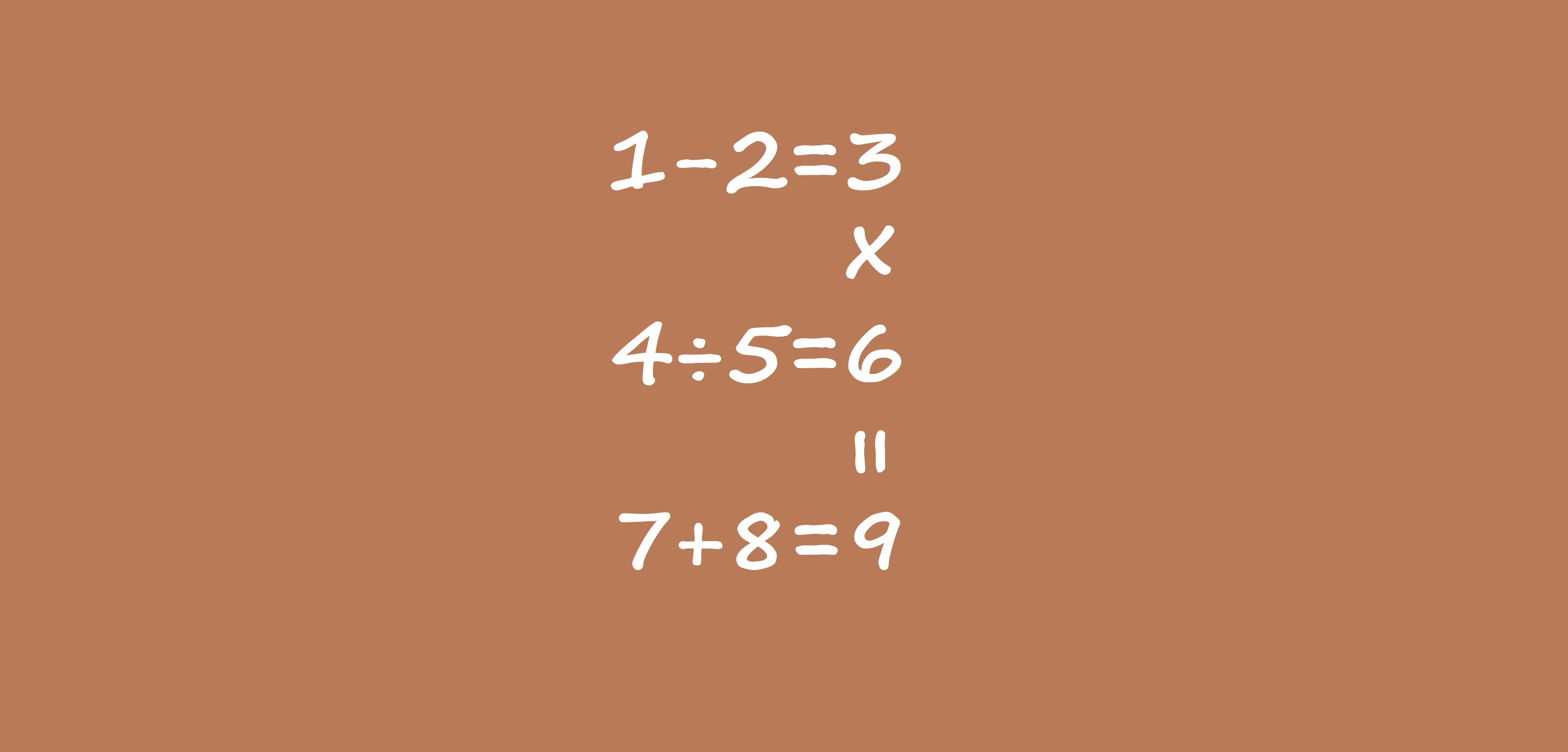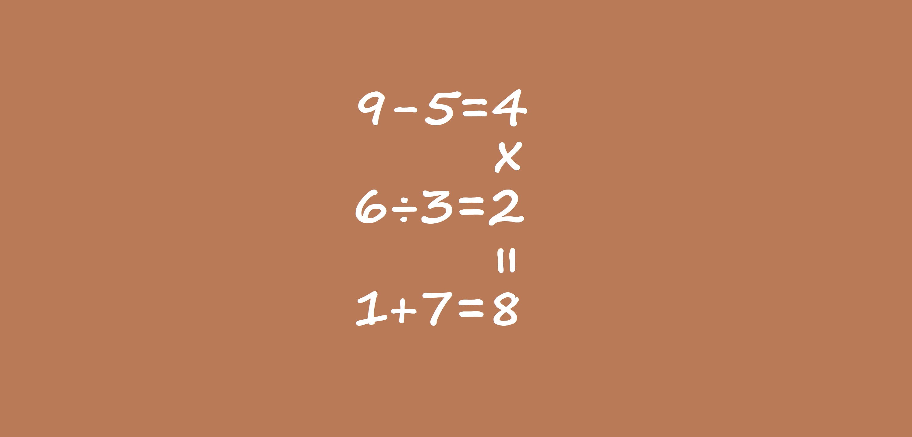7) В тази картинка има 3 „хоризонтални“ и 1 „вертикално“ уравнение. Можеш ли да разместиш цифрите така, че всички 4 примера да имат правилно решение?