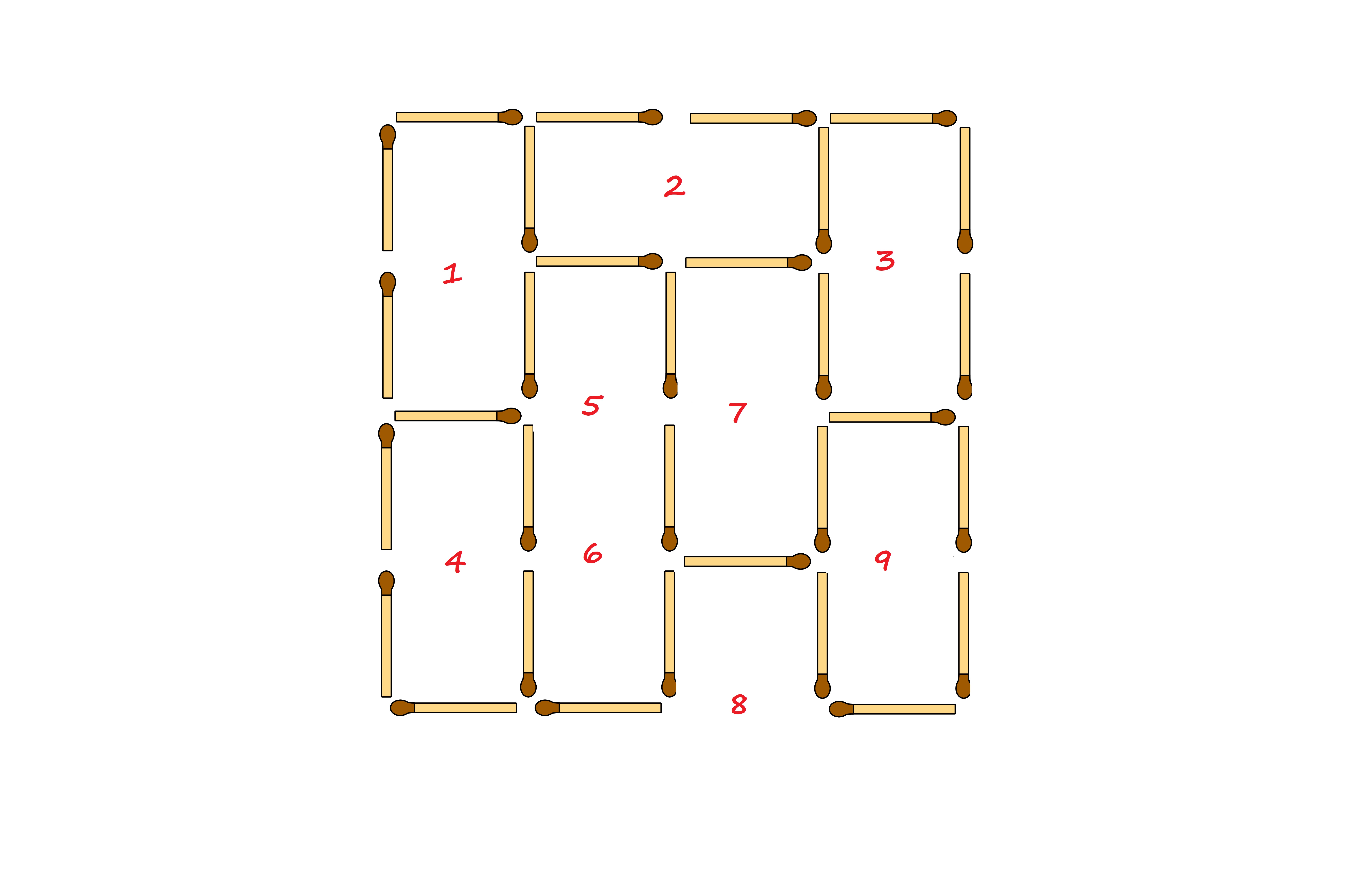 9) Тази фигура има точно 30 големи и малки квадрата. Можеш ли да направиш така, че да не остане нито един квадрат, като остраниш 9 от клечките?
