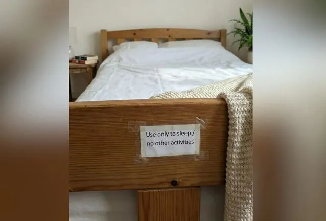 Случката бе споделена в Reddit на 30 ноември от потребител с ник Responsible-Lack-285, който публикува снимка на дървено легло, на чиято рамка е залепен бял лист. Бележката гласи: „Използвайте само за спане / без други дейности.“