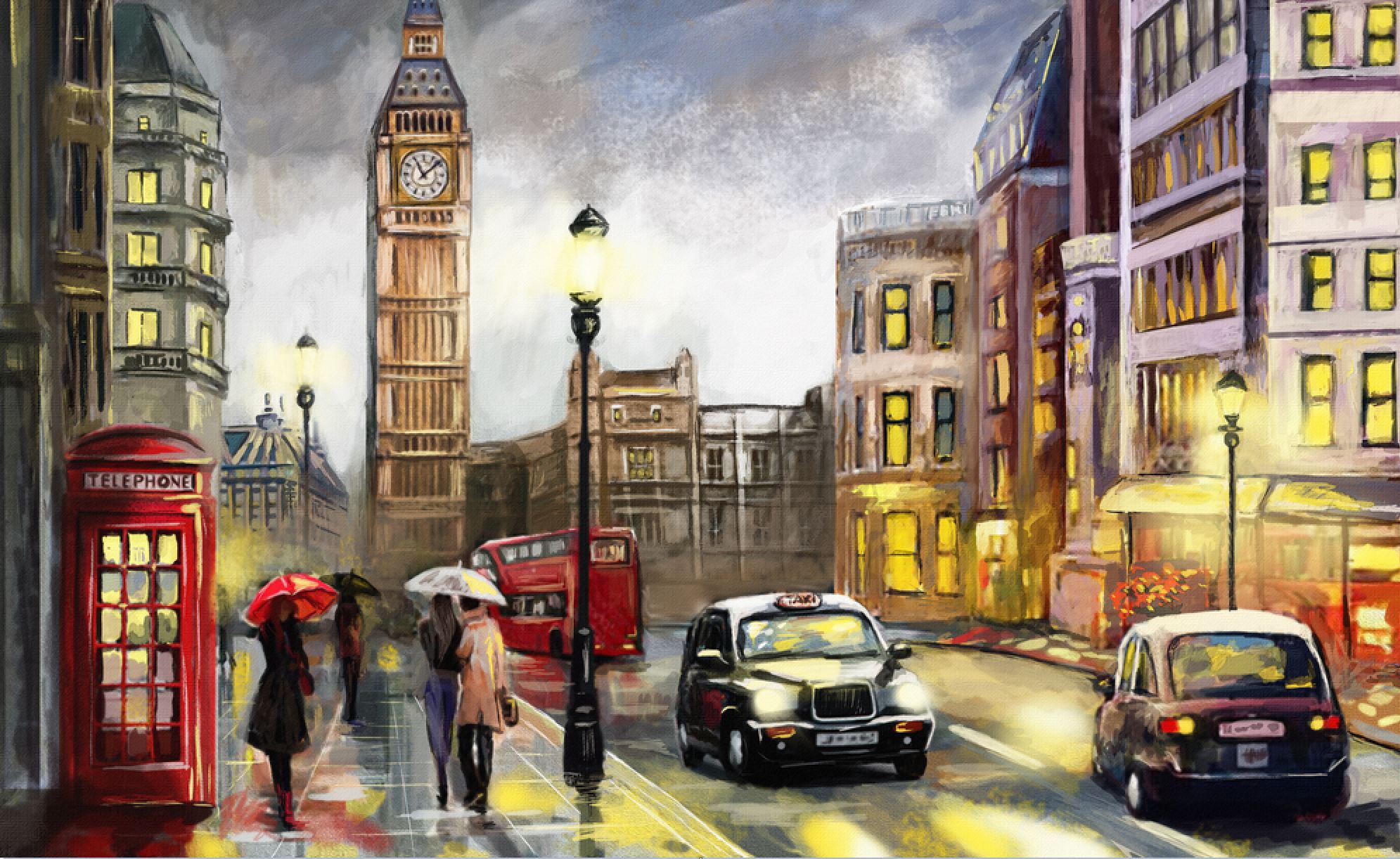 7) Движението в Лондон е наобратно. Освен това бихме могли да кажем, че въпреки че на пръв поглед вече не вали, хората са с чадъри.