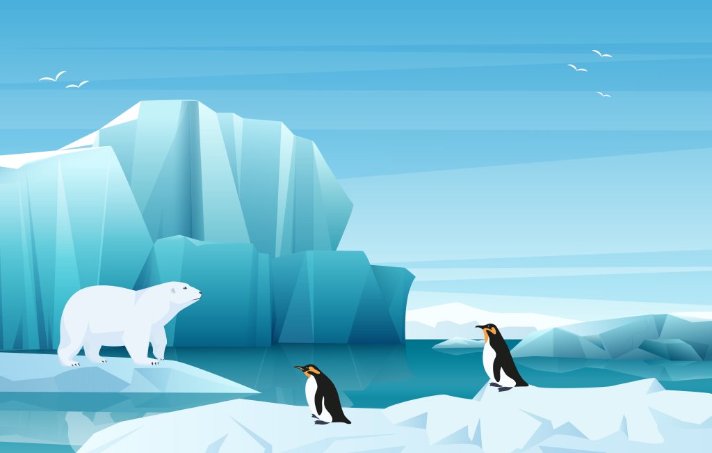 4) Бялата мечка живее на Северния пояс, а пингвините - на Южния.