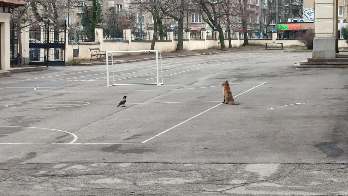 Животното е влязло в двора на Шесто училище сутринта на 29 януари, казва авторката на снимките Красимира Арсова. Тя каза, че лисицата е минала и по улица "Граф Игнатий" - една от най-натоварените в столицата.