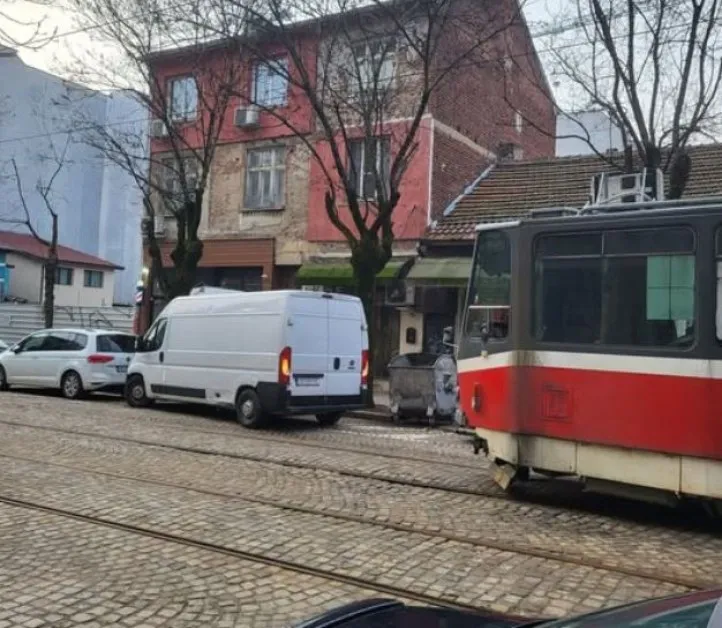 На снимка, разпространена в една от софийските групи за пътни неволи, се вижда как трамвай стои в изчакване зад спрелия бус. По думите на очевидци случката се е разиграла на улица „Пиротска“.
