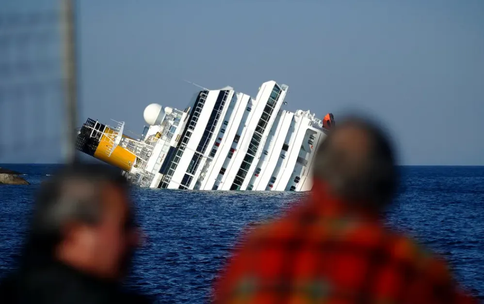 След удар в скали край остров корабът Costa Concordia потъва на 13 януари 2012 г.