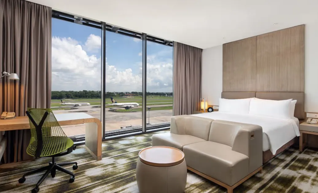 Допълнително предимство е локацията – хотелът има директен достъп до всички терминали на Singapore Changi Airport и до комплекса Jewel, което улеснява пътуващите.