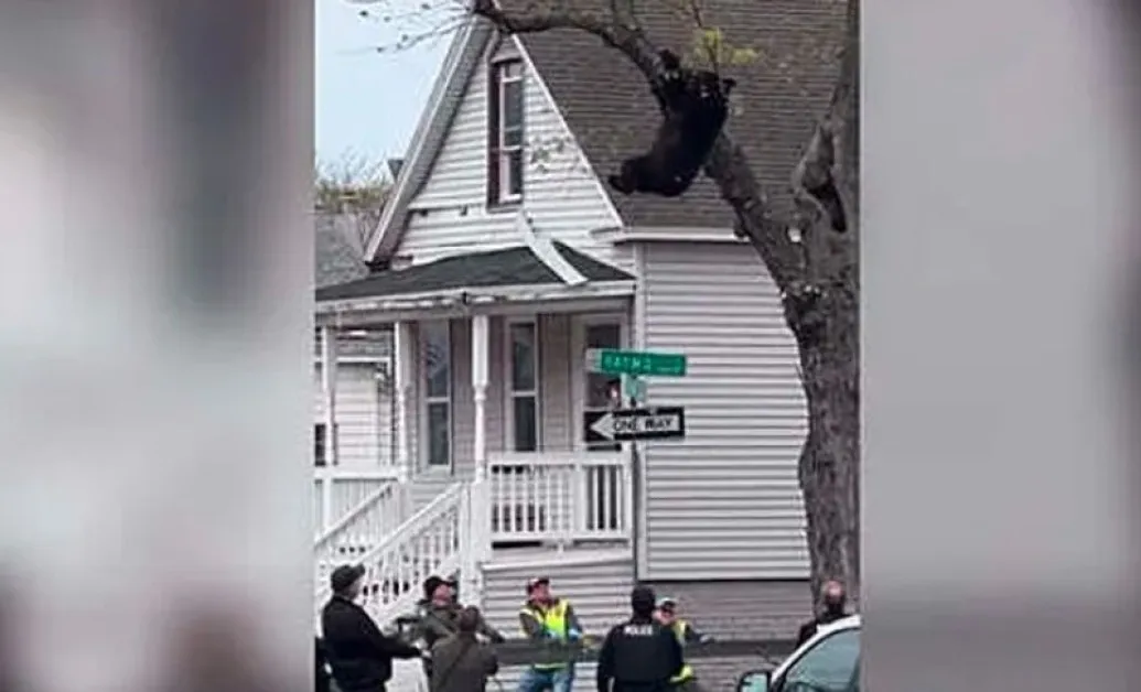 Журналисти съобщават, че инцидентът е станал на 21 април в Олбани, столицата на щата Ню Йорк. Местен жител е забелязал черна мечка, която се е катерила по дърво близо до дома му, но животното не е успяло да слезе.