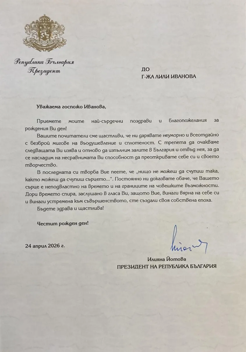 България празнува заедно със своята най-голяма музикална легенда. Днес рожден ден отбелязва примата на българската естрада Лили Иванова. Още от ранните часове на деня социалните мрежи бяха залети от вълна от обич, а официалните институции в страната изпратиха трогателни поздравителни адреси, подчертаващи непреходното ѝ значение за националната култура.