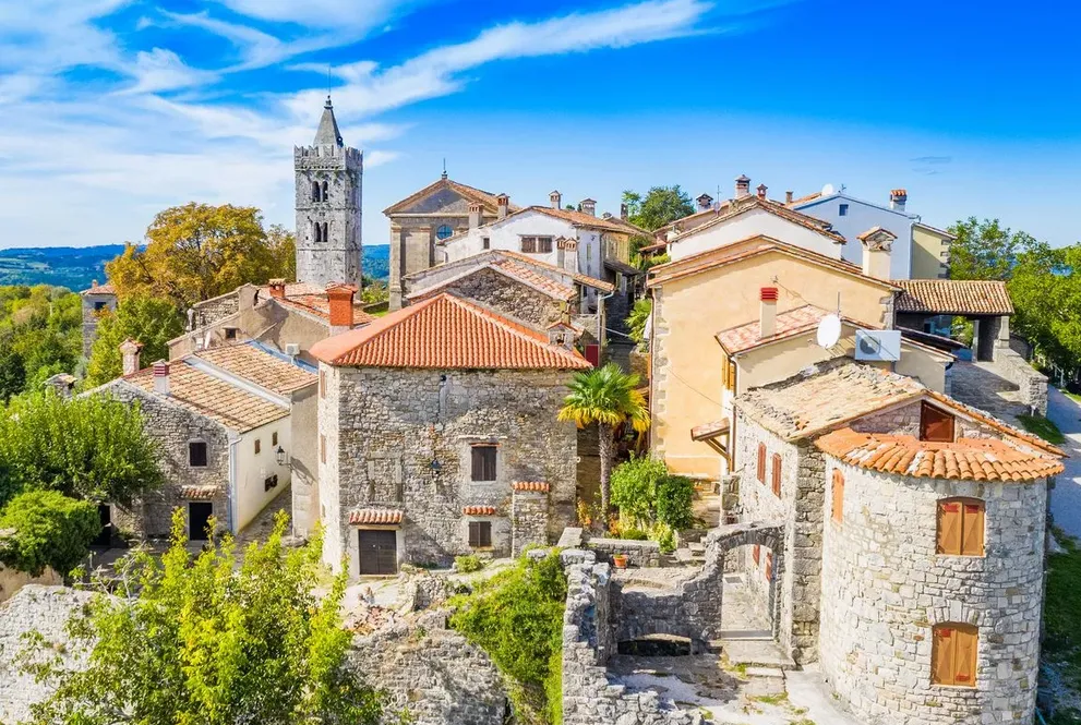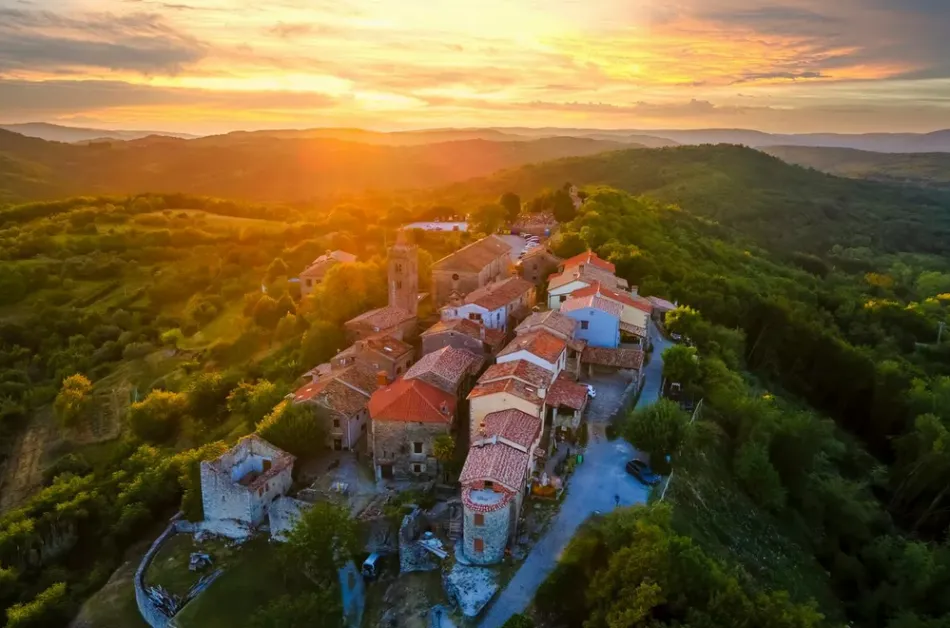 Сгушено сред хълмовете в централна Истрия, в северозападна Хърватия, малкото селце Хум предлага зашеметяващи гледки към околните поля и гори.