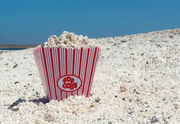 Приликата с истинските пуканки е толкова поразителна, че на снимки лесно може да бъде сбъркана с любимото кино хапване. Туристи от цял свят се стичат, за да видят природното чудо, наричайки го „най-странния плаж в света“ и сравнявайки го с райските плажове на Карибите.